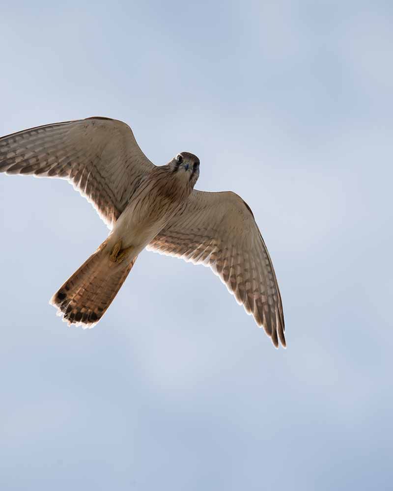 The smallest of Australia’s raptors (apart from male Collared Sparrowhawk). Fairly common around farmlands and may be seen hovering while searching for mice, insects, small birds and reptiles.
