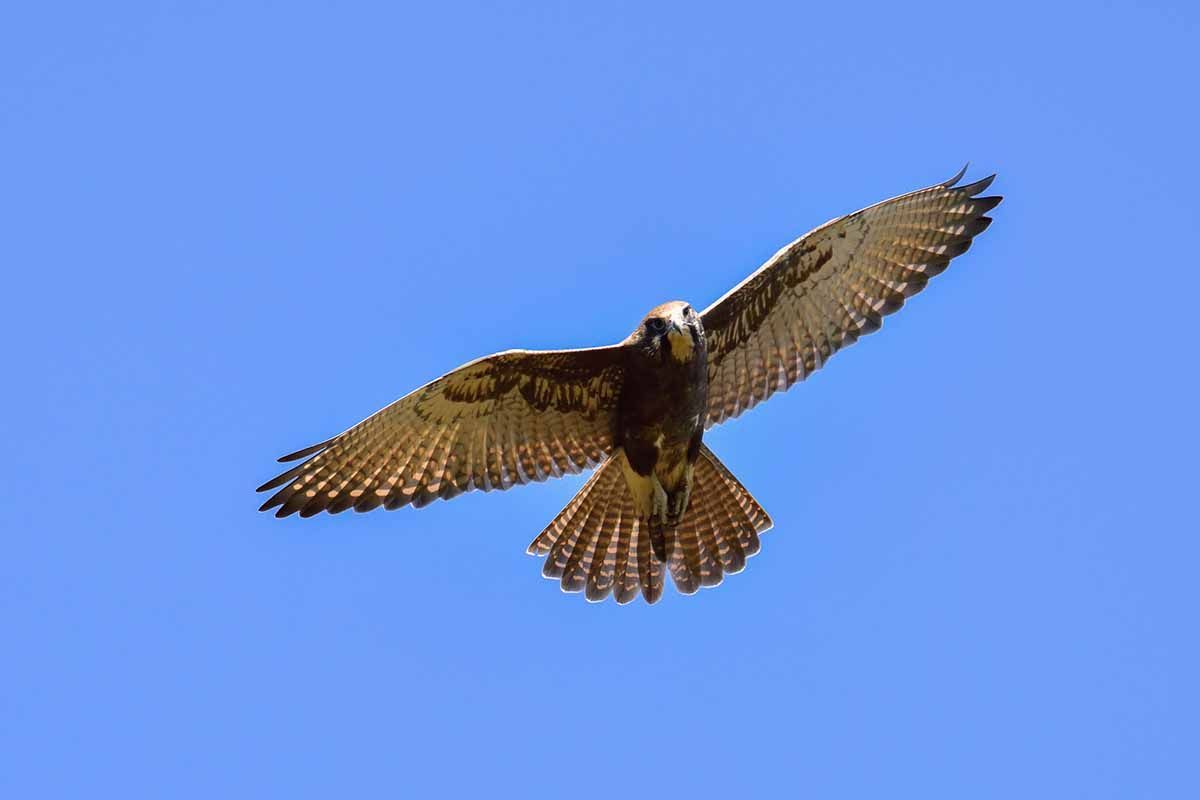 A medium-sized, versatile falcon with highly variable plumage, from very pale to wholly dark. Has long legs and short toes. One of Australia’s most common raptors, often seen on roadsides and farmlands. Hunts both on the ground and aerially for a large variety of mammals, reptiles, insects, and also carrion.