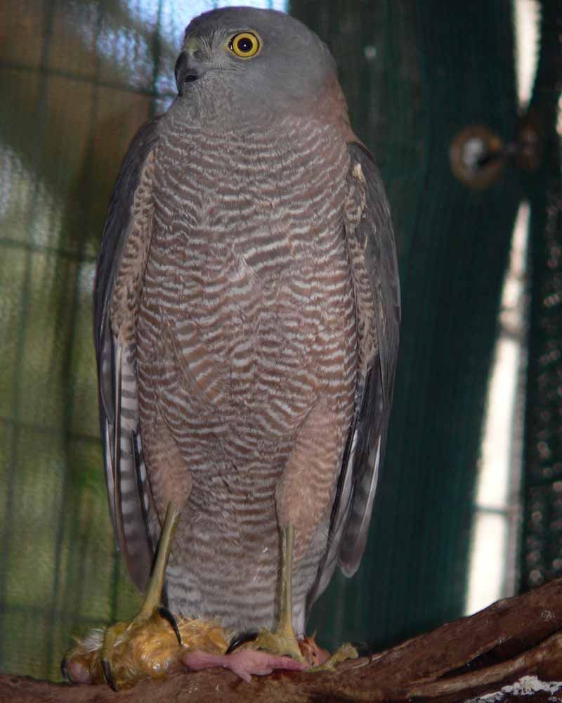A small, fierce lightly built hawk. Slender feet with middle toe projecting beyond the neighbouring toes. Feeds mostly on small birds but will take lizards, insects and occasionally small mammals.