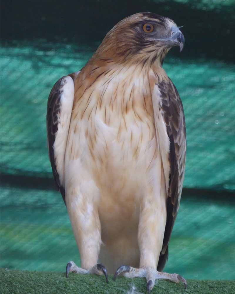 Small, strong, stocky eagle with legs heavily feathered to feet. Light and dark morphs. Distinctive flight with aerial undulations and soars in tight circles. Hunts mammals, birds, reptiles, and occasionally insects and carrion.