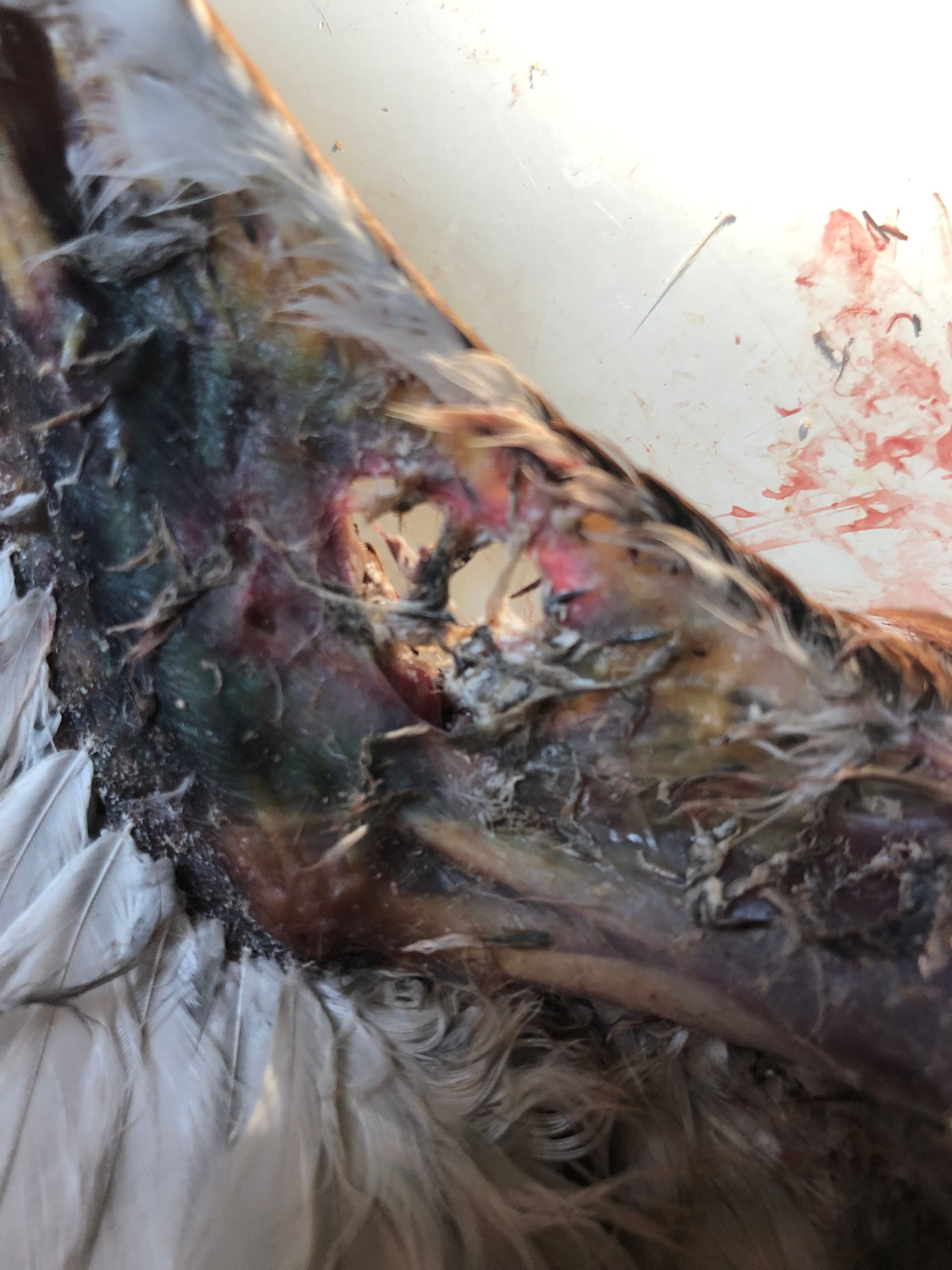 This is one of many wounds sustained by another wedge-tailed eagle while trying to extricate herself from barbed wire, a wildlife curse. The hole in her wing was big enough to put a hand through. The extent of her wounds and inability to resolve most meant that euthanasia was the only humane response to the young bird’s situation.